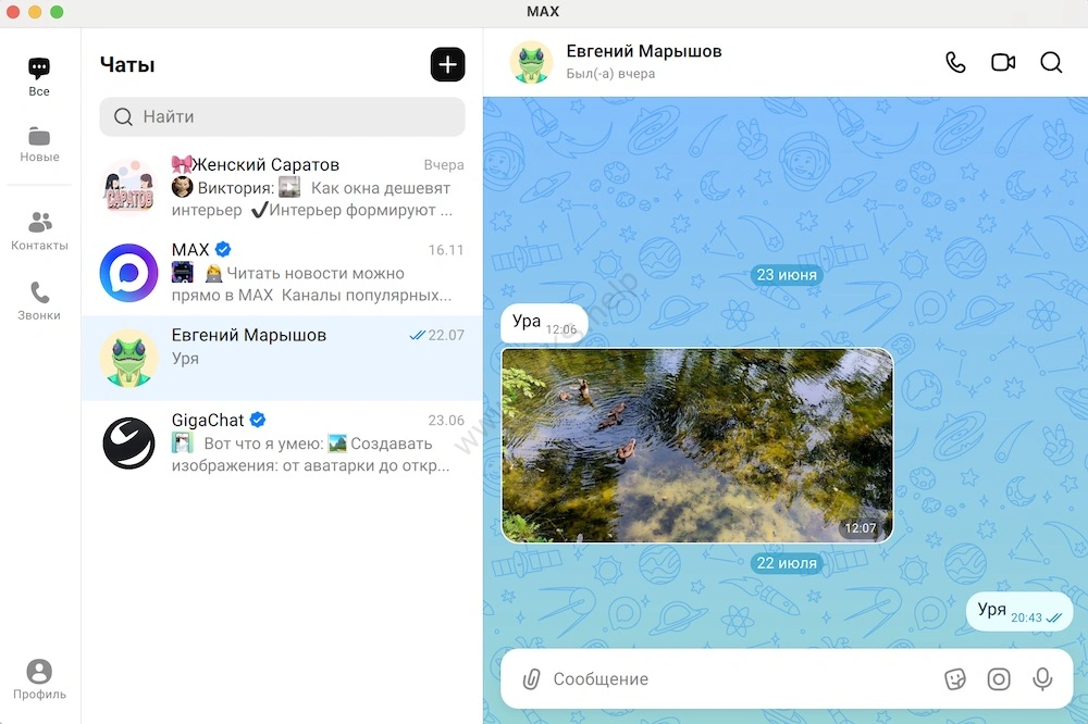 - Макс обеспечивает полную синхронизацию чатов и звонков между Android, iOS, macOS, Windows и веб-версией;
